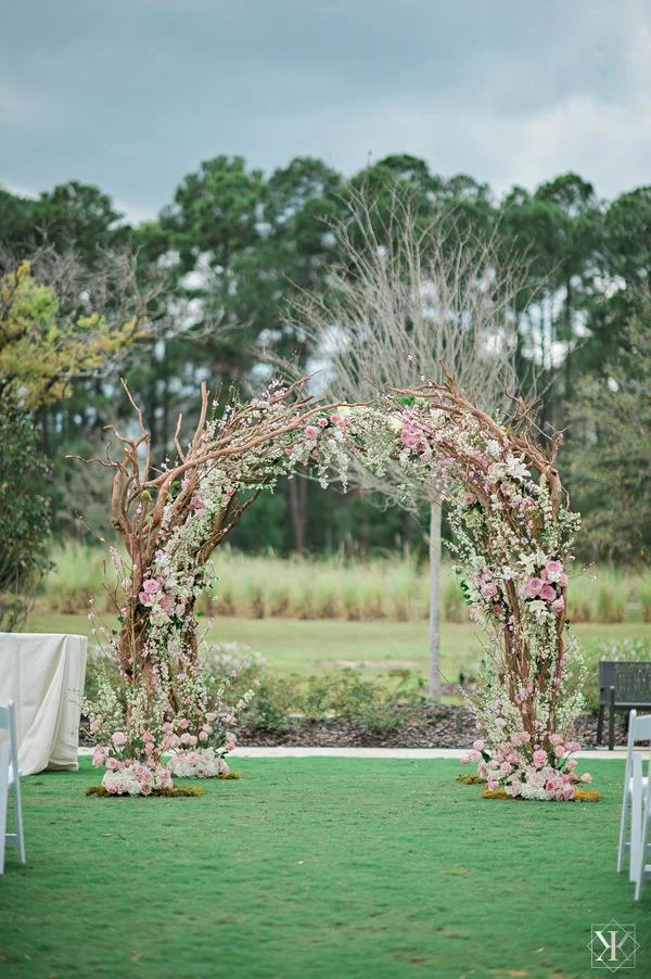 This couple had a vision, and Raining Roses Productions brought it to life! The woodwork and floral design came together beautifully!